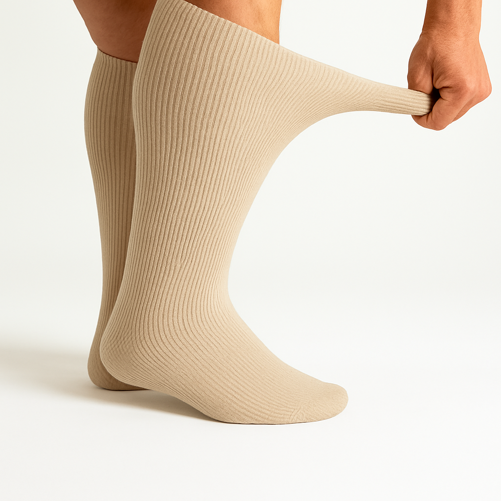 Nein – im Gegenteil. Kompriva Strümpfe sind deutlich einfacher anzuziehen als traditionelle medizinische Kompressionsstrümpfe. Die elastische Premium-Faser gleitet sanft über Wade und Ferse, ohne zu zerren oder einzuschneiden.