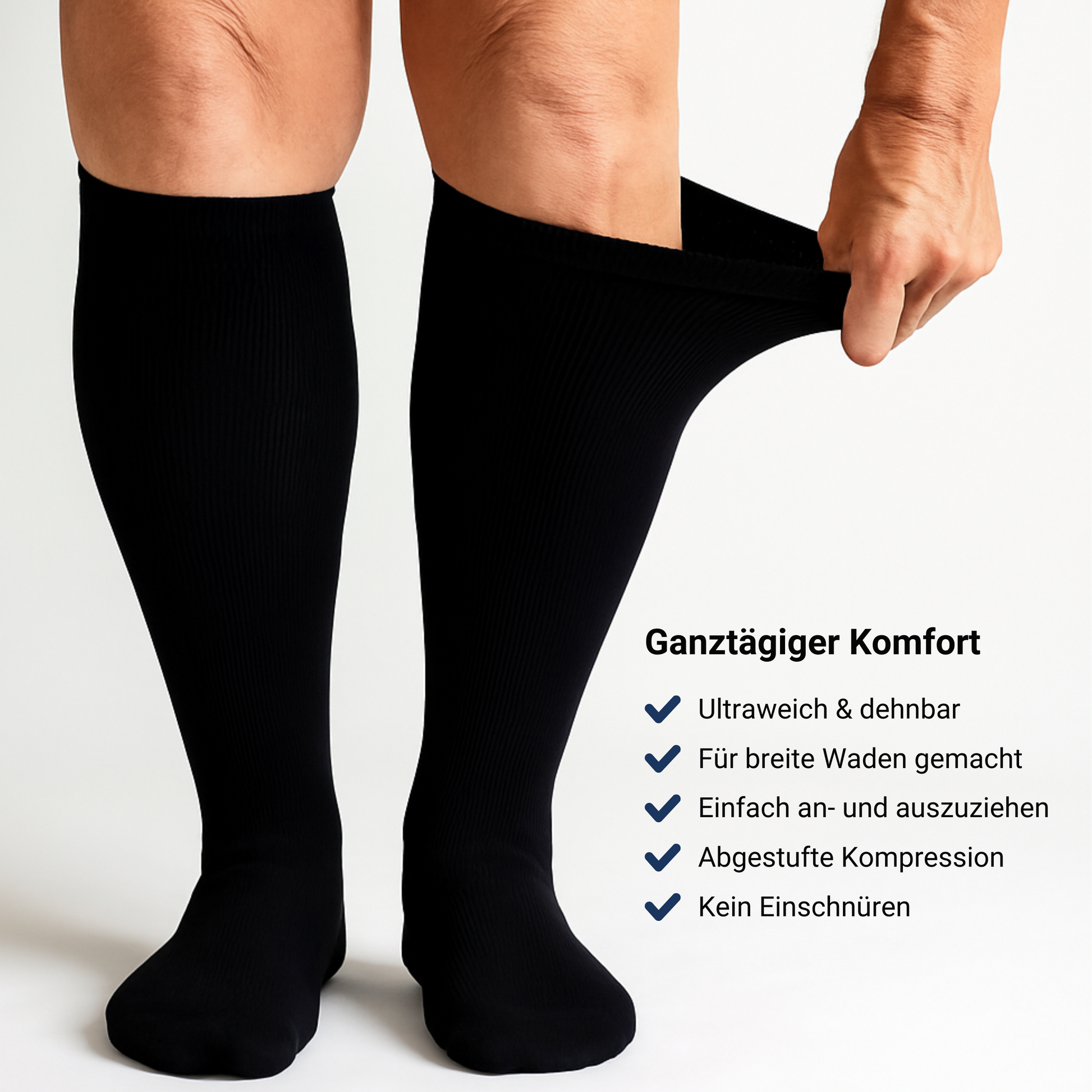 - Weicher, dehnbarer Bund passt sich jeder Wadenform an – ohne dass Sie kämpfen müssen