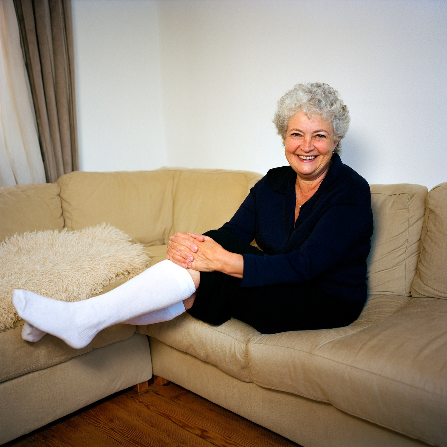 Viele unserer Kundinnen berichten, dass sie die Strümpfe selbst bei eingeschränkter Handbeweglichkeit problemlos anziehen können – ohne Hilfsmittel und ohne fremde Hilfe.