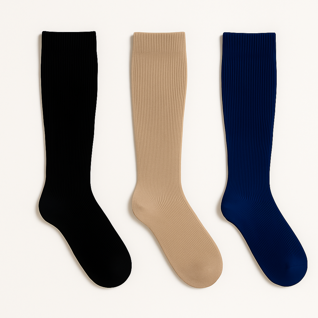 Kompressionsstrümpfe, die du wirklich jeden Tag trägst. Leicht anzuziehen. Angenehm zu tragen. Spürbar wirksam.