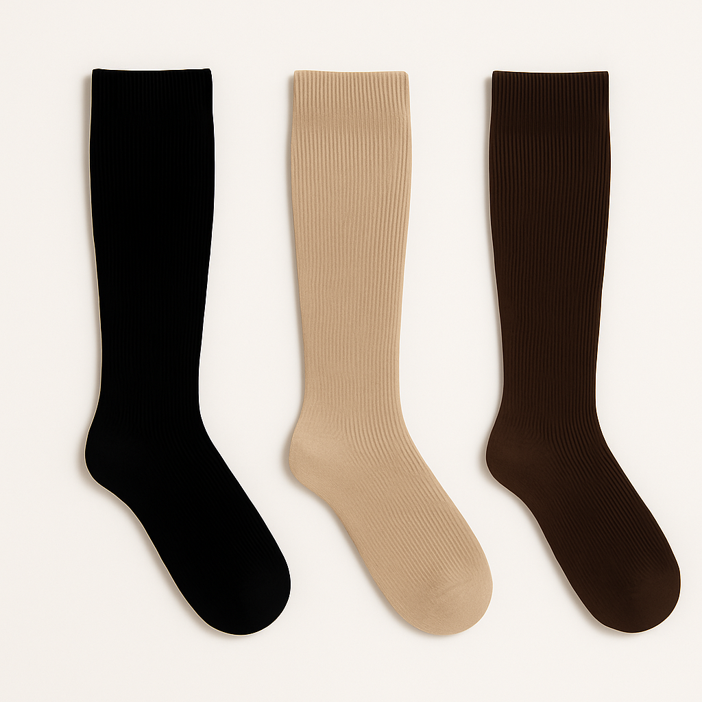 Kompressionsstrümpfe, die du wirklich jeden Tag trägst. Leicht anzuziehen. Angenehm zu tragen. Spürbar wirksam.